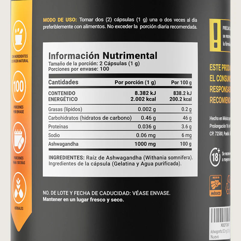 ¡Descubre la calma con Ashwagandha Root Powder de B Life®! Nuestra increíble composición de Ashwagandha esta diseñada para brindar relajación y concentración gracias a su potente formulación de 1000 mg por porción, en comparación con otras presentaciones que contienen menor proporción.