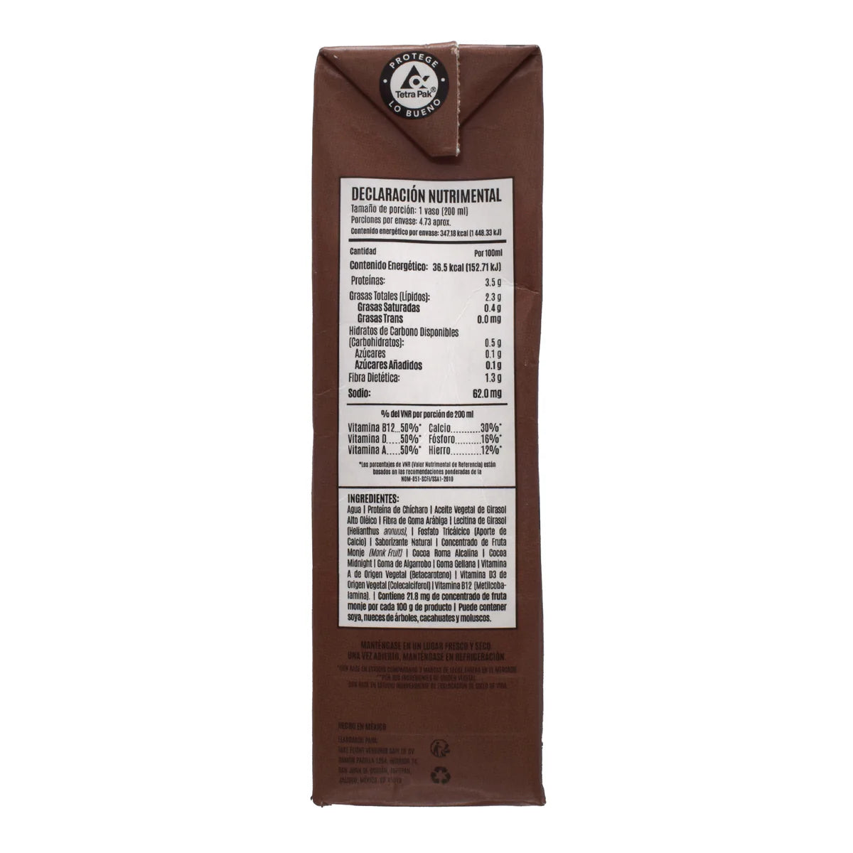 Agua, base de proteína de chícharo, saborizantes naturales, azíºcares aí±adidos (jugo de fruto del monje), extracto alto en vitamina D3 vegetal, cocoa