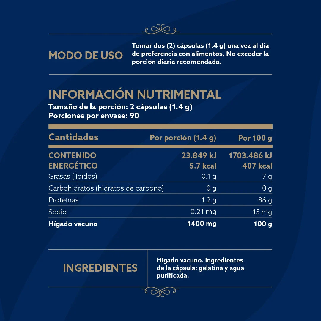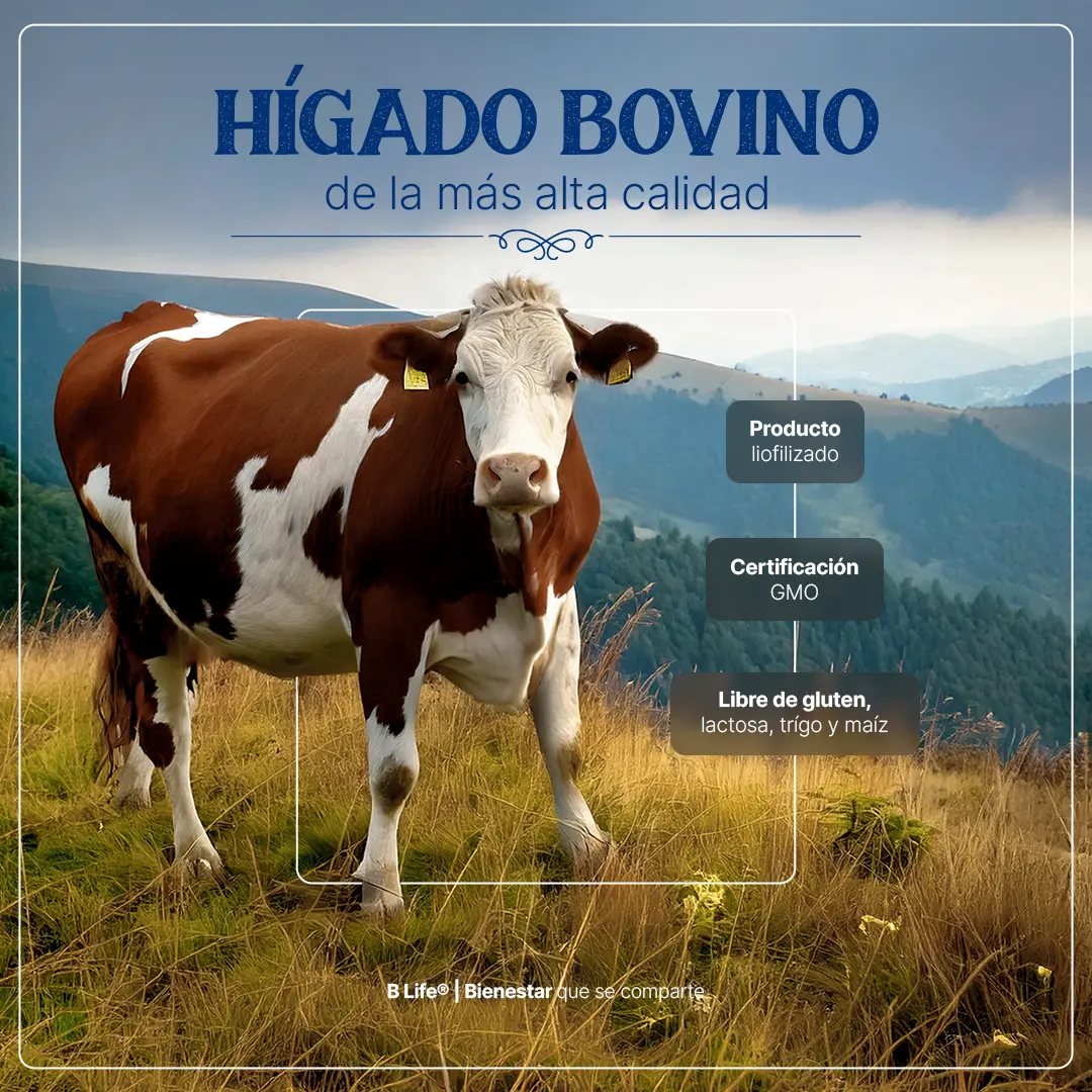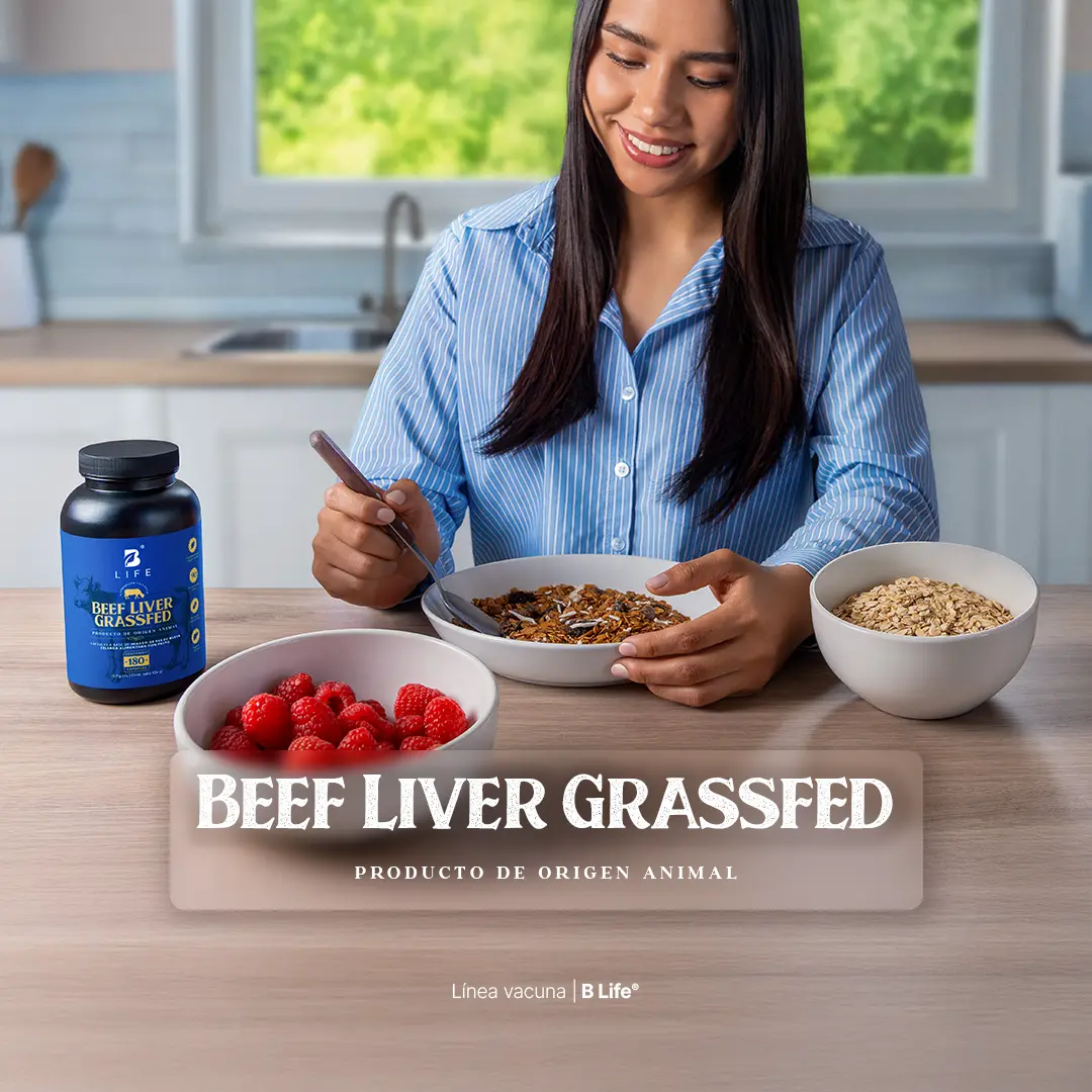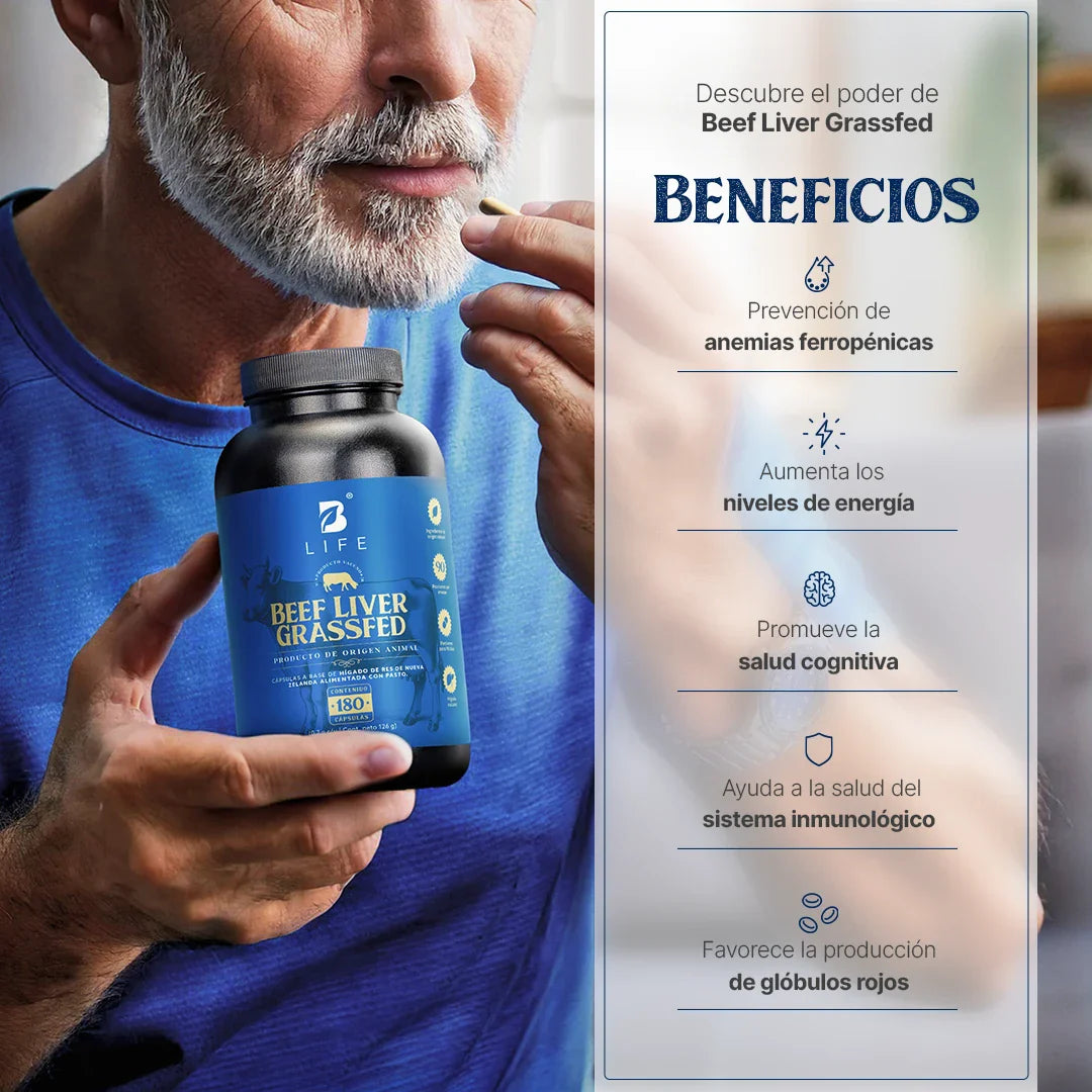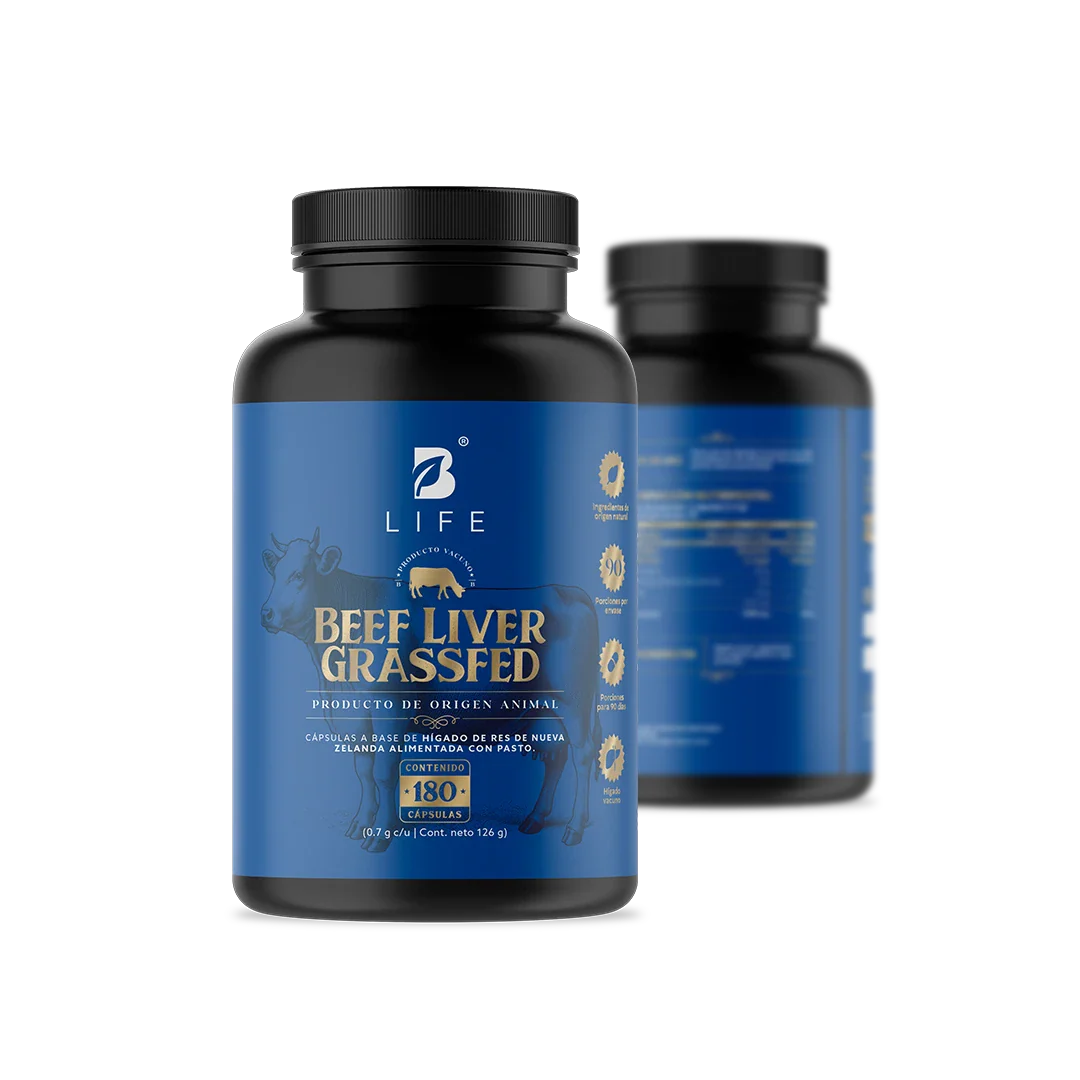 ¡Descubre el poder de Beef Liver Grassfed B Life®! Cada cápsula ofrece una máxima concentración de 700 mg de hígado vacuno. Es rico en proteínas, vitaminas y minerales.