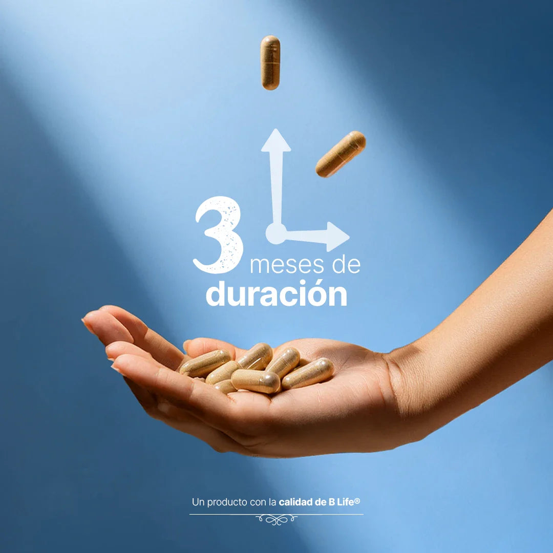 Un solo frasco de 180 cápsulas te brindará un suministro de hasta 3 meses de consumo, siguiendo la dosis sugerida de 2 cápsulas al día, de acuerdo al modo de uso indicado.