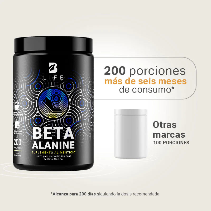 ¡Disfruta de la formulación de Beta Alanine de B Life®! Nuestra exclusiva composición ofrece una concentración de 2000 mg de Beta Alanina, un valioso aminoácido. Un solo frasco de 400 gramos te brindará un suministro de más de 6 meses de consumo, siguiendo la dosis sugerida de una medida (2g) al día, de acuerdo al modo de uso indicado.