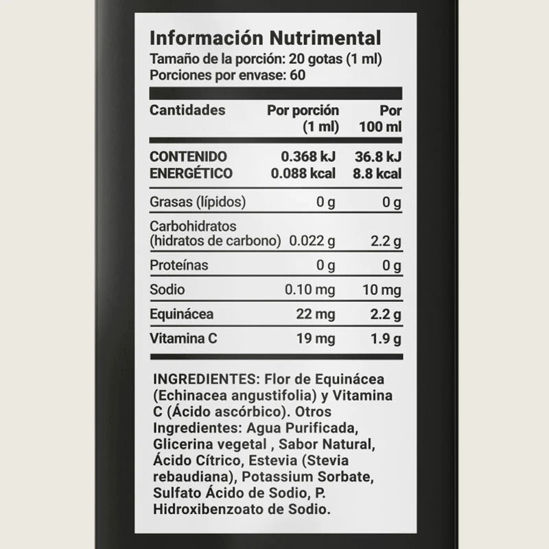 Un solo frasco de 60 ml te brindará un suministro de hasta 2 meses de consumo, siguiendo la dosis sugerida de 20 gotas (1 ml) al día, de acuerdo al modo de uso indicado.