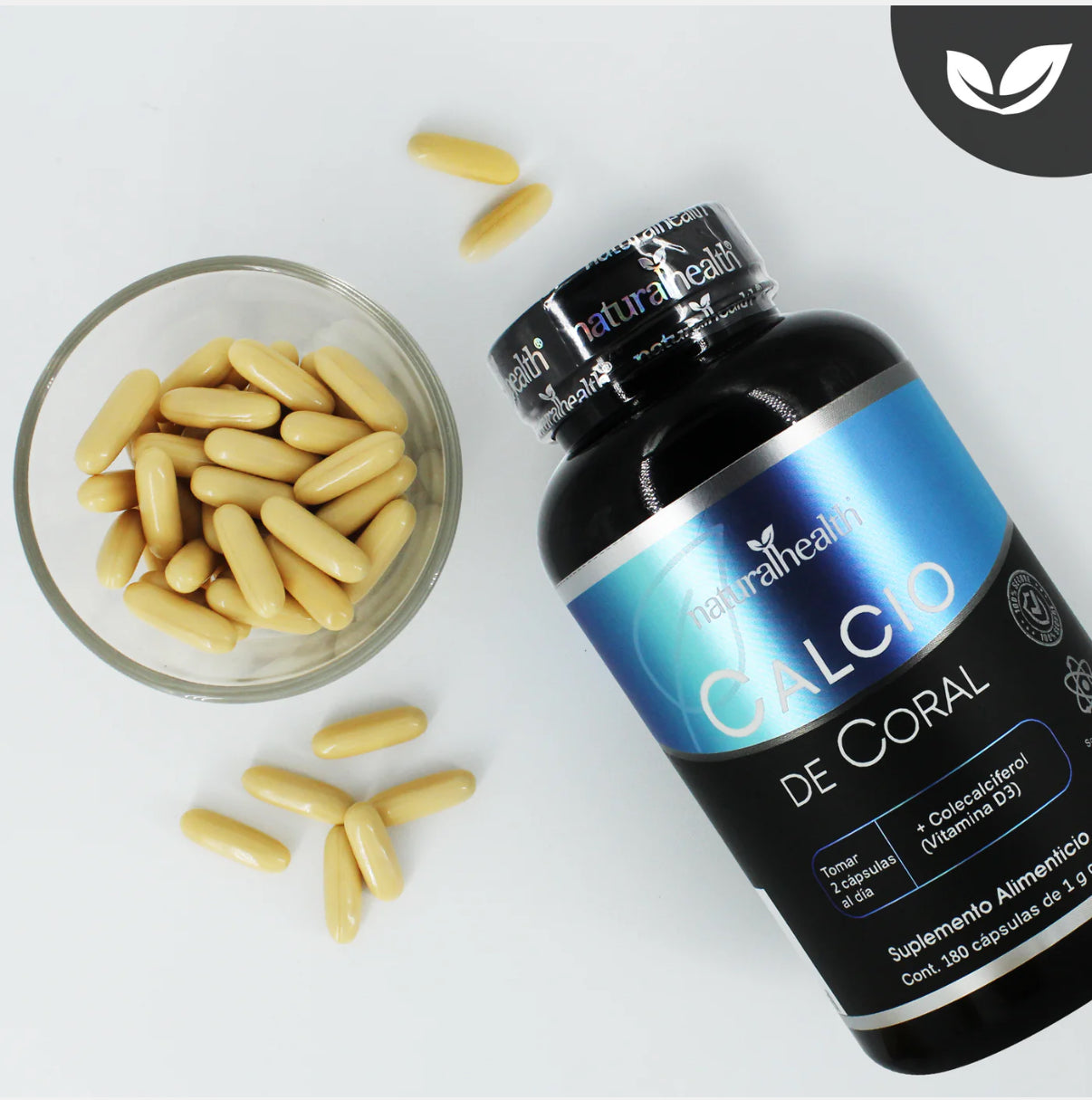 Calcio de Coral + Vitamina D3 es un suplemento alimenticio natural diseñado para brindarle a tu cuerpo el soporte que requiere. Elaborado con calcio de coral marino, una fuente natural de calcio altamente biodisponible, y vitamina D3,