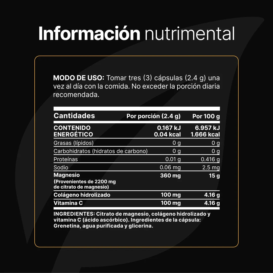 El citrato de magnesio es reconocido por ser la forma de magnesio con mayor absorción y biodisponibilidad. Nuestra fórmula especial contiene una máxima concentración de este mineral esencial para tu bienestar.