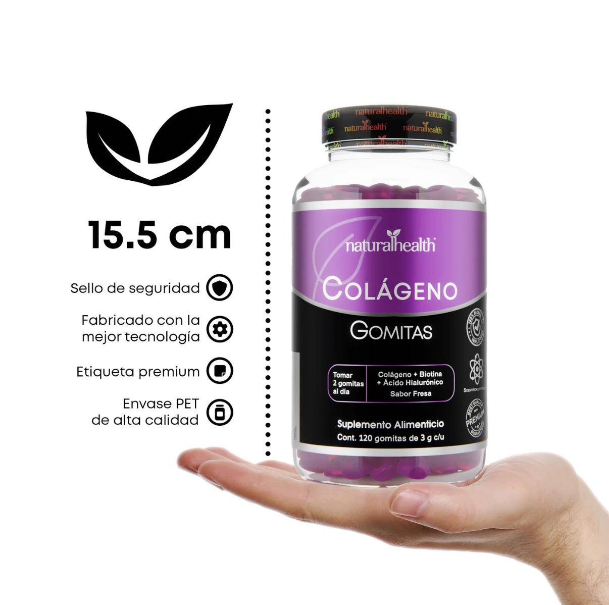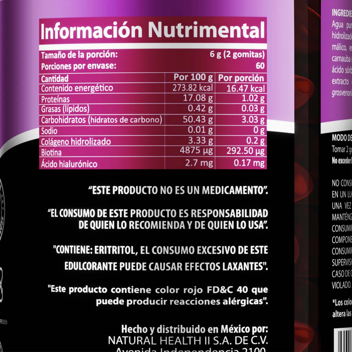 Colágeno en Gomitas es un suplemento alimenticio diseñado para mejorar ayudarte a lucir radiante. Con una deliciosa combinación de colágeno hidrolizado, ácido hialurónico y biotina, estas gomitas sabor fresa te brindan una manera fácil y deliciosa de obtener los nutrientes esenciales que tu cuerpo necesita para lucir radiante.
