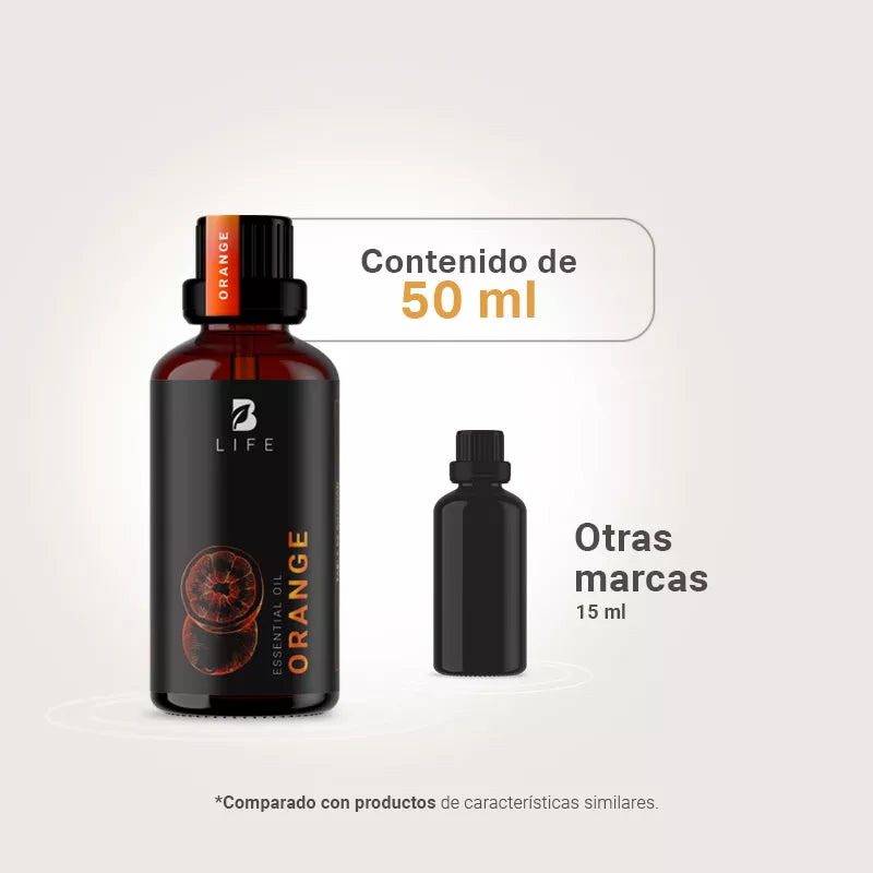 Orange (Naranja) Essential Oil B Life® es un producto 100% Puro y Natural con numerosas propiedades derivadas de su activo que ayudan a reducir la celulitis, dolores musculares y articulaciones, manchas, acné y piel grasa, entre otros beneficios. A diferencia de otros productos que solo contienen 10 y 15 ml, Essential Oil contiene 50 ml.