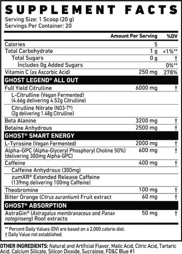 GHOST LEGEND® ALL OUT está creado para aquellos que buscan llevar su rendimiento al siguiente nivel, proporcionando la energía necesaria para superar tus límites en cada entrenamiento.