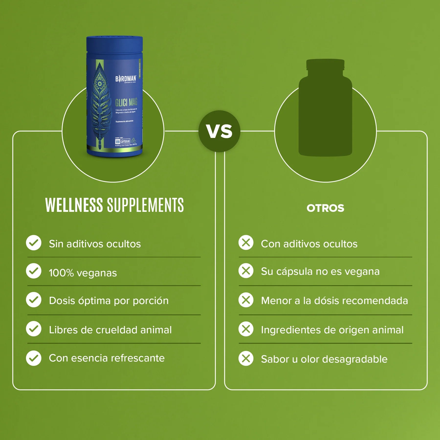 El Glicinato de Magnesio es un suplemento alimenticio de alta calidad en cápsulas veganas, diseñado para complementar tu alimentación diaria. Con una fórmula limpia sin aditivos, este producto es libre de azúcar, gluten, soya y lácteos, ofreciendo una opción confiable y segura para tu nutrición.