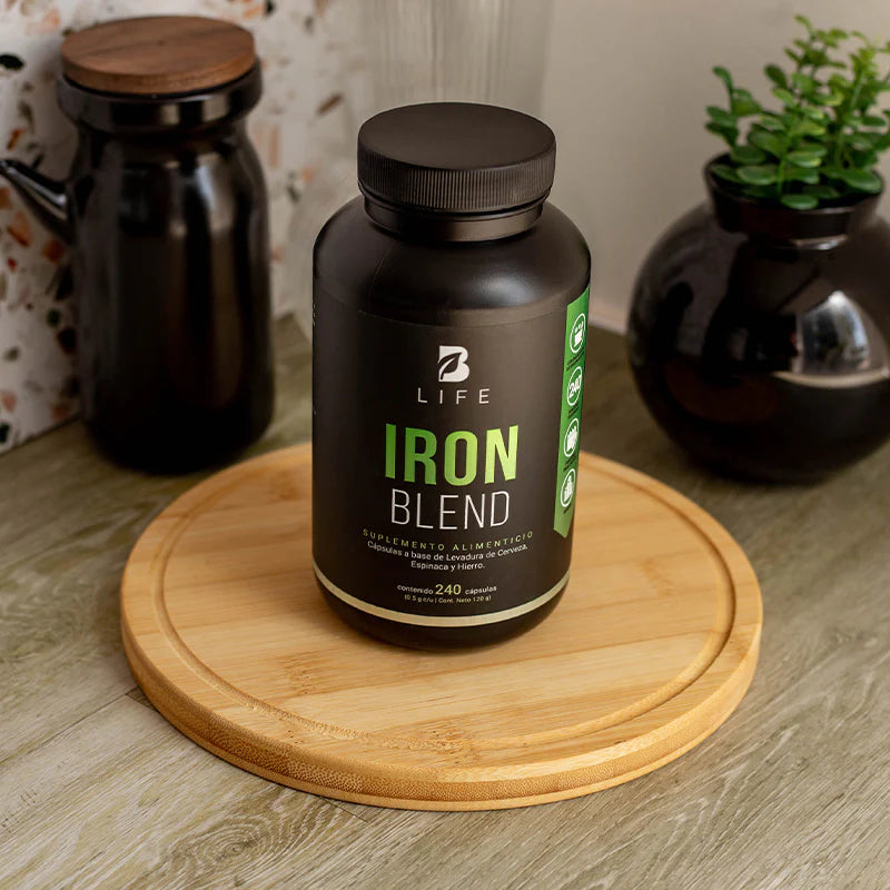 ¡Disfruta del alto valor proteico de Iron Blend B Life®! Experimenta con cada cápsula una potente concentración de 500 mg de una exclusiva combinación de Hierro, Levadura de Cerveza y Espinaca. Vitaminas y minerales esenciales para la absorción y utilización efectiva de las proteínas, ausentes en otras presentaciones.