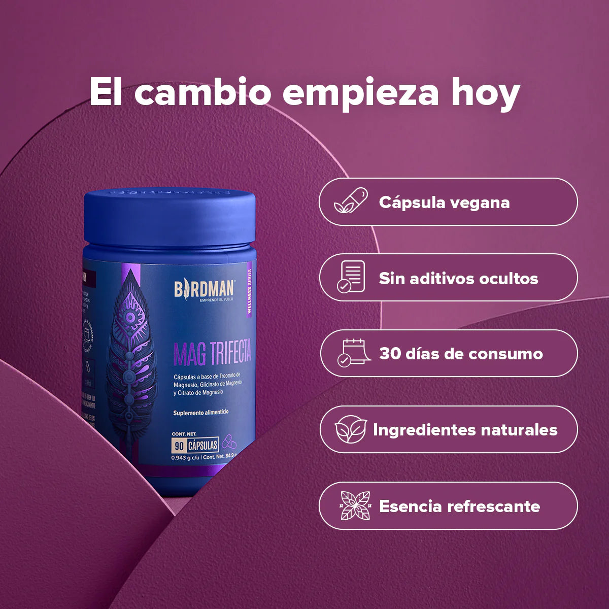 Descubre Birdman Mag Trifecta 3 en 1, un suplemento premium que combina Citrato, Glicinato y Treonato de Magnesio en una fórmula única diseñada para complementar tu alimentación diaria. Estas cápsulas veganas ofrecen una opción confiable para quienes buscan un producto de alta calidad, libre de aditivos ocultos.