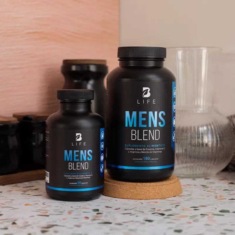 ¡Activa tu día con Mens Blend B Life®! Cada cápsula de 650 mg está diseñada para aportar una potente concentración de Creatina Monohidratada, BCAA 2:1:1 (L-Leucina, L-Isoleucina, L-Valina) y L-Arginina, a diferencia de otras presentaciones que ofrecen únicamente 505 mg. Además de estar enriquecida con Ácido Fólico, Biotina y un increíble Complejo de Vitaminas esenciales para el hombre. Un solo frasco de 180 o 90 cápsulas te ofrecerá un suministro de hasta 6 o 3 meses, consumiendo 1 cápsula al día, de acuerdo al modo de uso indicado.