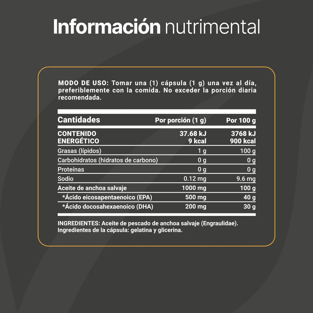 Cada una de nuestras cápsulas aporta Ácido Eicosapentaenoico (EPA) y Docosahexaenoico (DHA), dos ácidos grasos valiosos para ti.