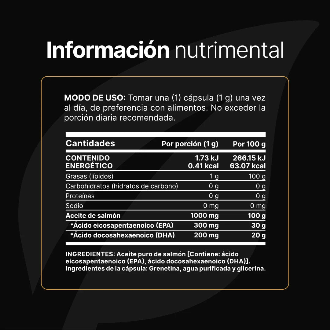 Cada cápsula contiene ácido eicosapentaenoico (EPA) y docosahexaenoico (DHA), dos ácidos grasos esenciales para tu organismo.