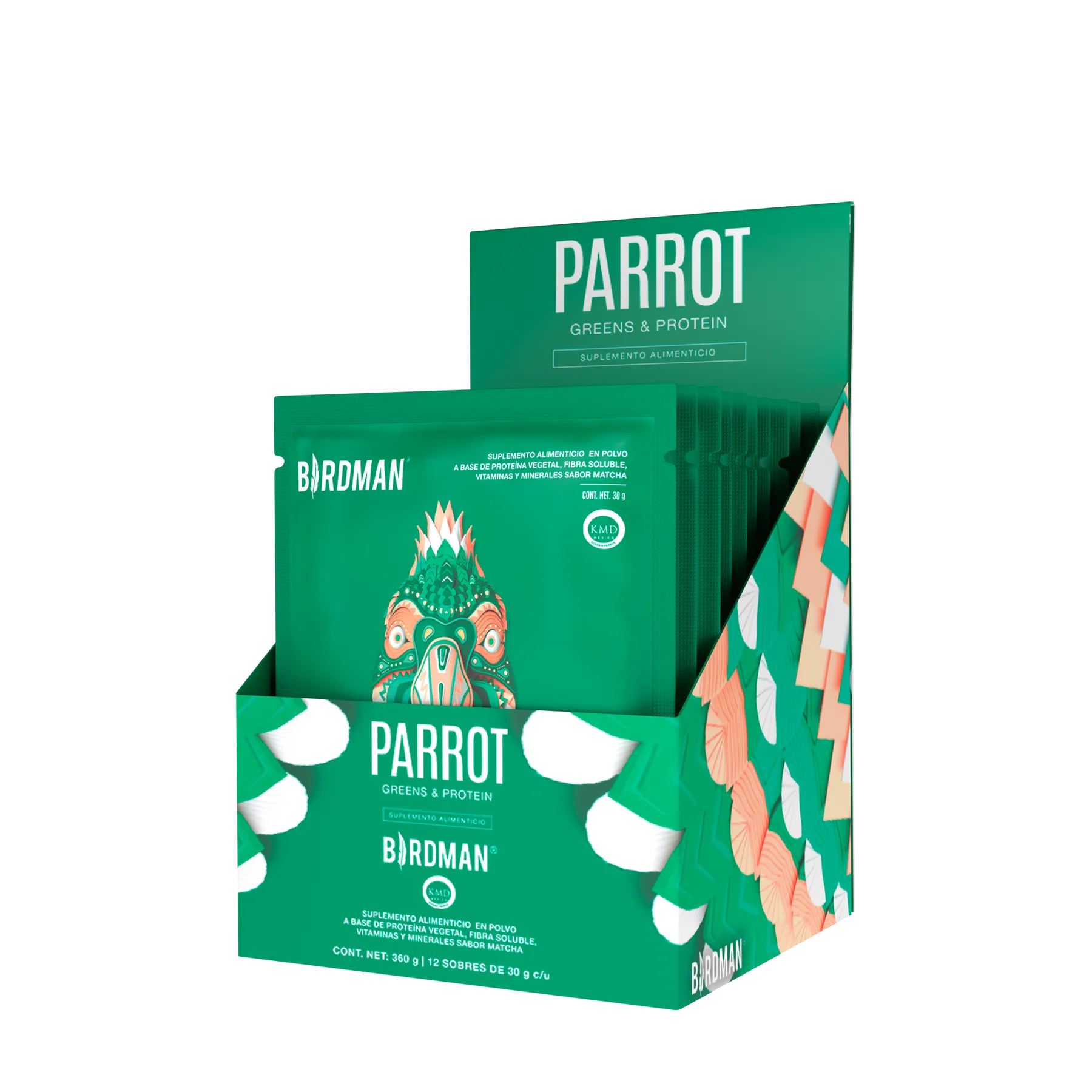 Parrot Greens & Protein es un complemento alimenticio que contiene super alimentos acuáticos y terrestres con alto contenido de verdes, proteína, fibra, y micronutrientes 100% de origen vegetal. Si se te suele olvidar o se te complica consumir ensaladas verdes durante el día, ¡Parrot te puede ayudar! Con sabores Matcha y BerryVanilla, Parrot Greens & Protein es ligero al estómago e ideal para tomarse como colación durante el día. ¡Parrot es nutrición práctica!