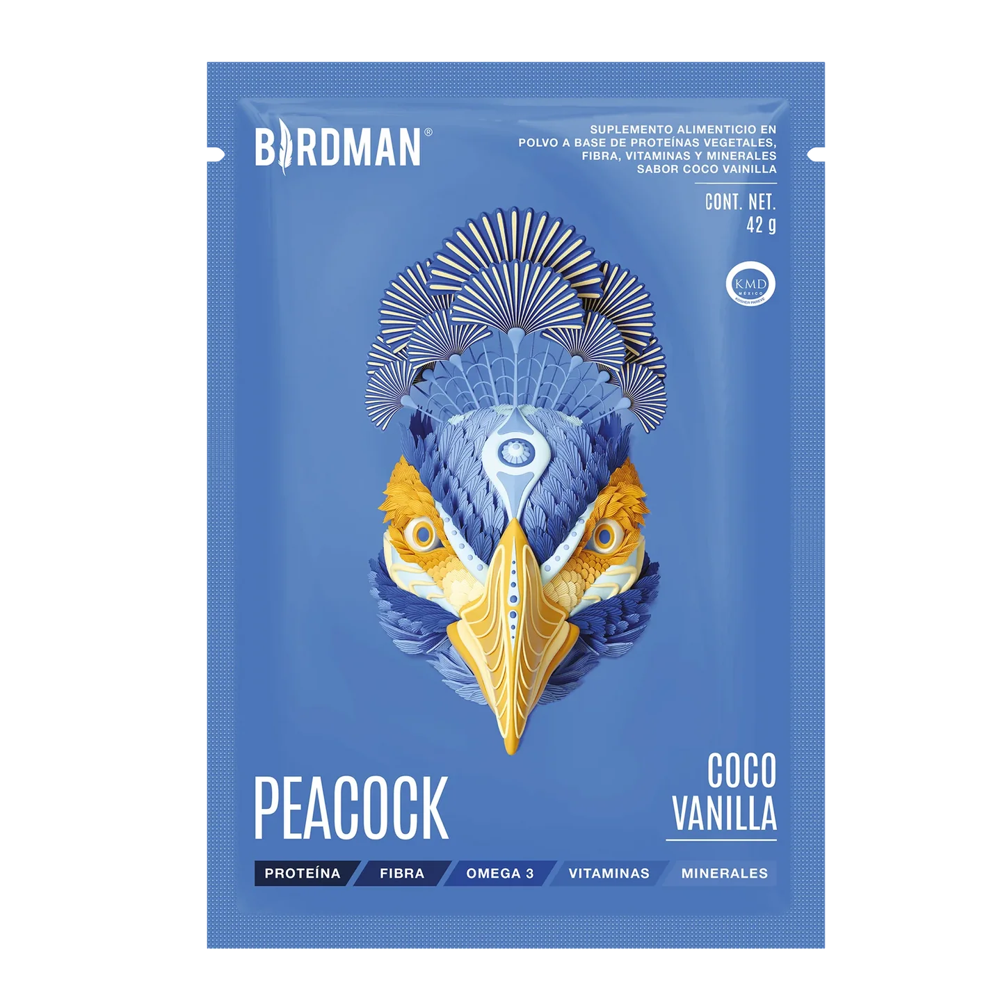 Con Peacock buscamos aportar los macronutrientes típicos de una dieta alta en proteína y los micronutrientes que te ayudarán a complementar tu alimentación para llevar una dieta saludable. Peacock aporta especialmente aquellos nutrientes que tienden a hacer falta en personas que siguen una dieta basada en plantas como Vitamina B-12, Vitamina D y ácidos grasos Omegas 3 y 6. Contiene proteína vegetal con un perfil de aminoácidos completo, verdes/vegetales, fibra, vitaminas, minerales y enzimas. Peacock es un suplemento que ofrece lo mejor del reino vegetal. Disponible en delicioso sabor chocolate y coco-vanilla.