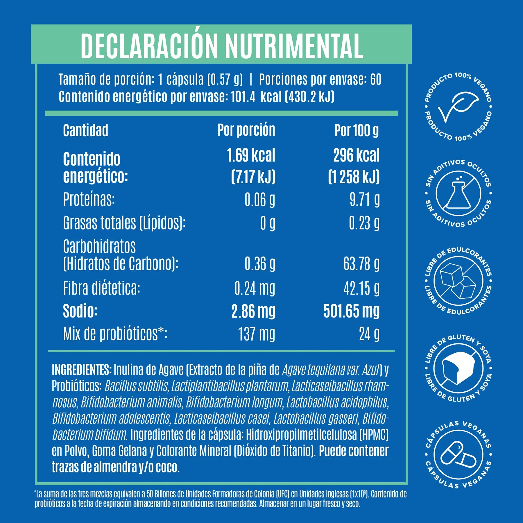 Premium All-In-One Probiotic - Probióticos con 50 Billones de UFC - 60 Cápsulas - 60 Porciones