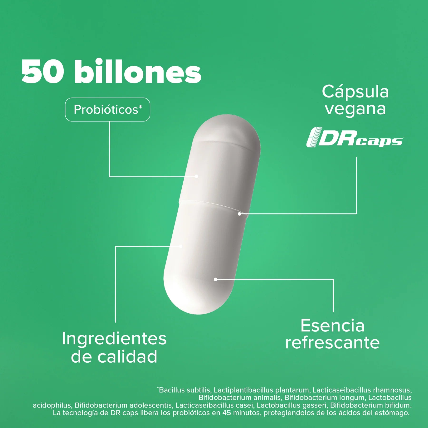 Elaborado con una mezcla 100% vegetal, libre de contaminantes y sin aditivos ocultos, Premium All-In-One Probiotic es ideal para quienes buscan lo mejor en probióticos. Sus cápsulas veganas de alta calidad tienen una esencia refrescante y están diseñadas para integrarse sin esfuerzo en la rutina diaria.