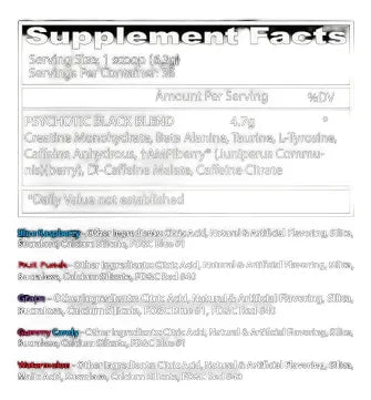 Al igual que el original, Psychotic BLACK te dará una mayor concentración, una energía insana y aumentará tu producción de fuerza en el gimnasio. Con menos cafeína, Psychotic BLACK es ideal para aquellos que necesitan ese empujón extra pero quieren un estimulante más bajo.