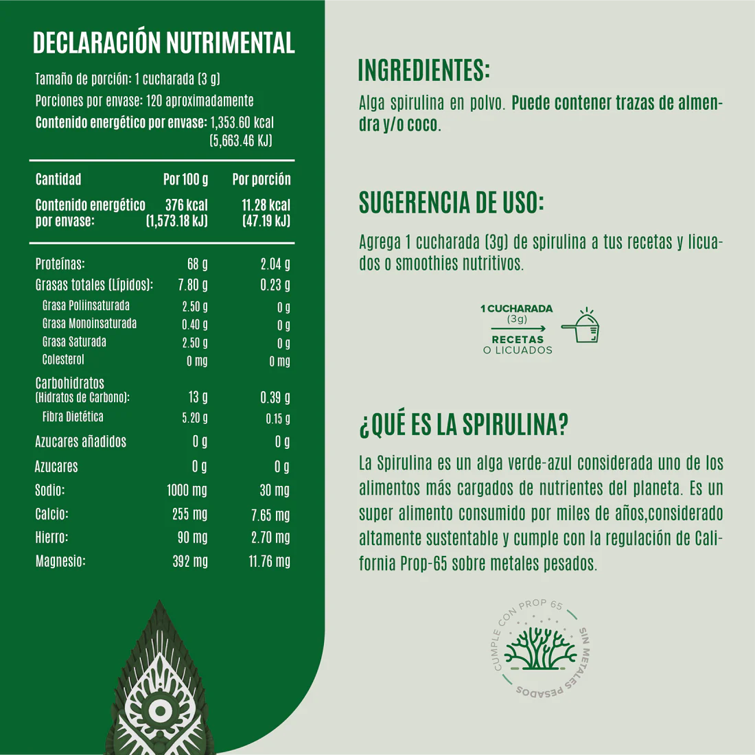 Con 360g de Spirulina en Polvo, este producto de Birdman se convierte en un aliado indispensable para quienes buscan mejorar su salud y energía de manera natural y sostenible.