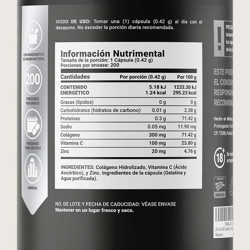 Un solo frasco de 200 o 100 cápsulas te brindará un suministro de más de 6 o 3 meses, siguiendo la dosis sugerida de 1 cápsula al día, de acuerdo al modo de uso indicado.